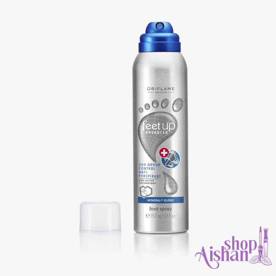 اسپری ضد تعریق و ضد بوی پای 36 ساعته فیت آپ کنترل بوی بد پا تا 36 ساعت (اثبات شده توسط تحقیقات بالینی)کنترل تعریق و خیسی پا.حاوی پودر جهت بهبود جذب و نرم کنندگی پوست. حفظ بهداشت بین انگشتان پا.حاوی مواد معدنی با نتایج اثبات شده روی پوست: مس جهت نرمی، روی جهت تسکین، منیزیم جهت محافظت و آهن جهت تصفیه و بازسازی