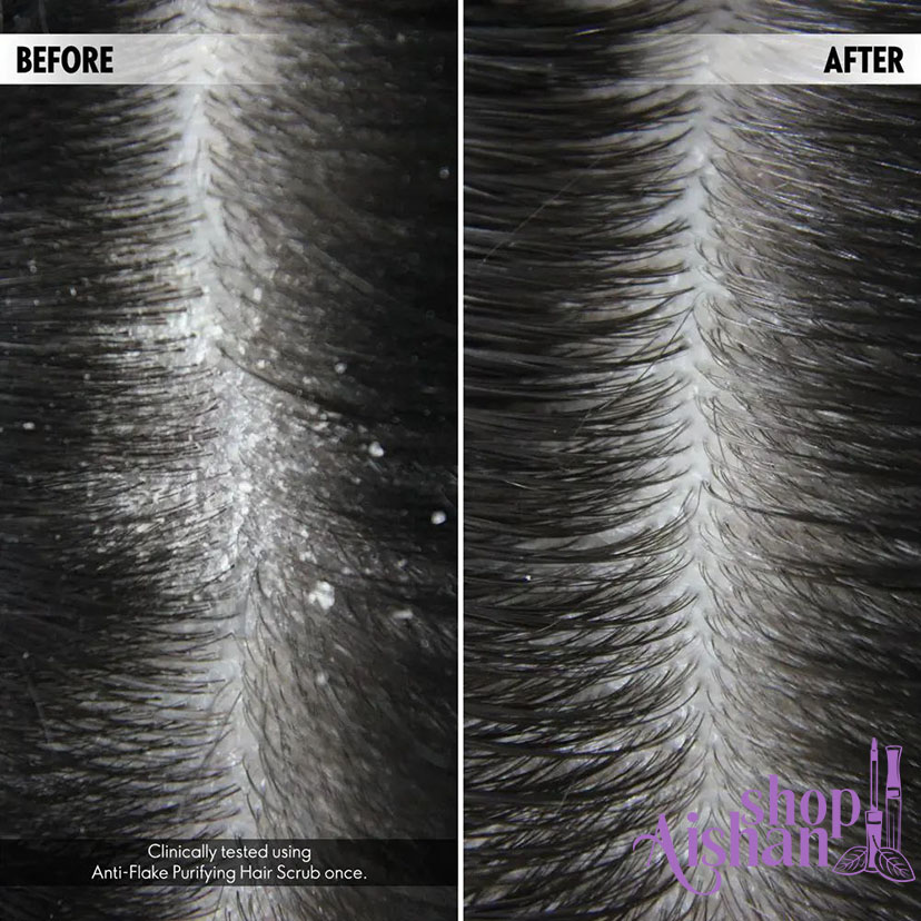 اسکراب ضد پوسته پوسته شدن و ضد شوره سر، حاوی اسید سالسیلیک و دانه های سیلیس هیدراته که پوست را لایه برداری کرده و منافذ را باز می کند.