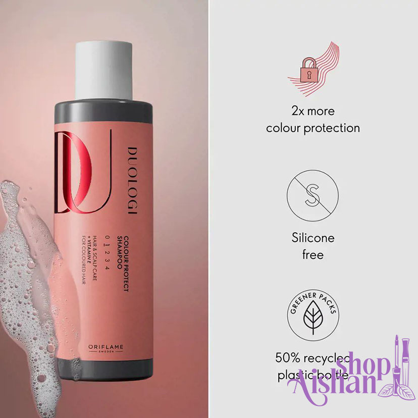شامپوی محافظی که مراقبت بیشتری را برای موهای رنگ شده ارائه می دهد. فرمول مرطوب کننده بدون سولفات حاوی آنتی اکسیدان احیا کننده و ویتامین E، موها را با ملایمت و بدون آسیب پاک می کند تا از رنگ مو در برابر محو شدن محافظت کند. دو برابر محافظت بیشتر از درخشانی رنگ موها.
